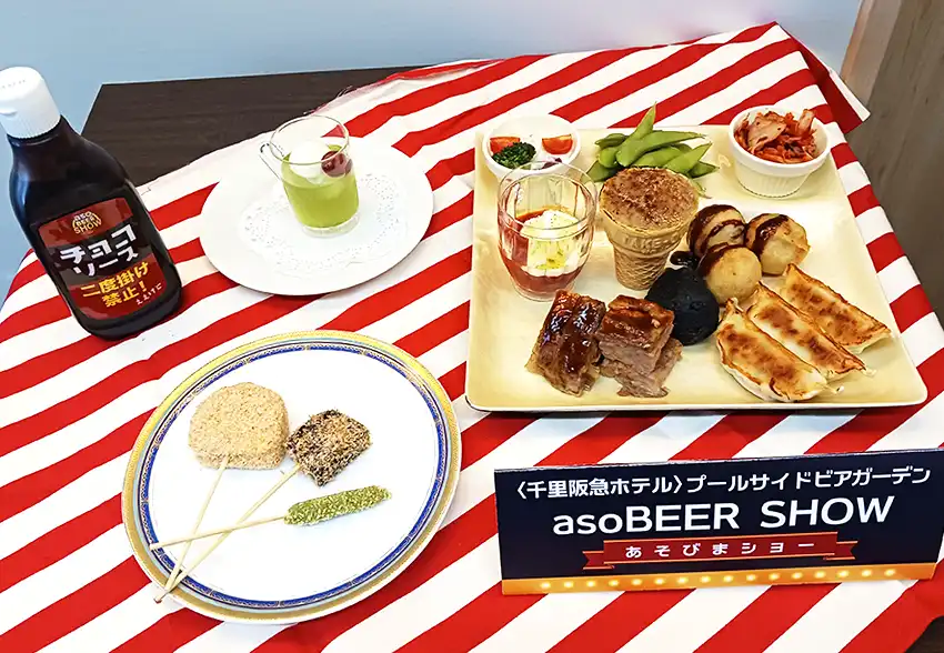 千里阪急ホテル「プールサイドビアガーデン」の2024年のテーマは、「あそび×ビアガーデン」。サブタイトルには「~asoBEER SHOW(あそびまショー)~」としており、イベントの楽しさはもちろん、お料理にも遊び心がたっぷり!