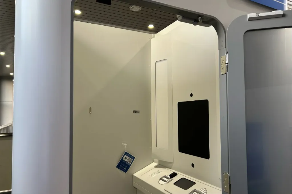 JR岸辺駅の改札口すぐのところに、何やら近未来的なポッドがありました。その名は「カラダ測定ポッド」!扉を開けると…?