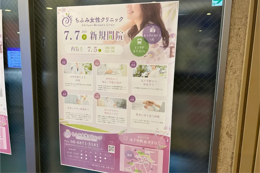 以前、新たに開院するというニュースをお届けした北千里の「ちふみ女性クリニック」。7月7日に開院したとのことで、新たな情報をお届けします♪