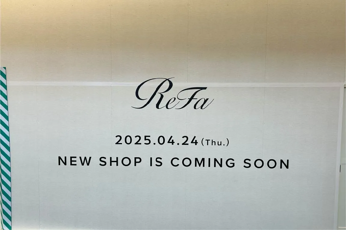 お家美容をサポートするヒットアイテムの美容ブランド「ReFa」が、2025年4月24日(木)にオープンします。場所は、2Fオレンジサイドの「フルラ」と「Cosme Kitchen」の間です。