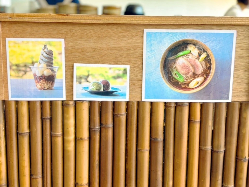 軽食メニューは、「きつねうどん」や「きつねそば」各780円などのほか、土・日曜限定の「河内鴨の鴨南蛮そば」1380円や「河内鴨の炊き込みご飯」380円(いずれも1日5食限定)もありました。