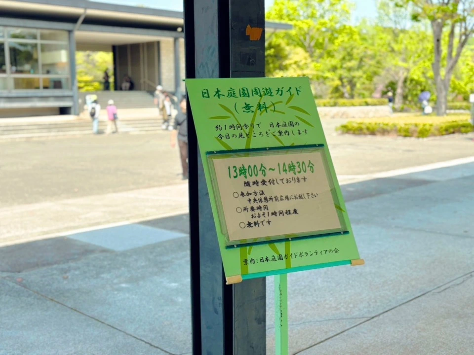 上流の西端は上代、中流の山谷は中世、下流の山麓は近世、最下流の東端は未来と、4つの時代様式に構成されている「日本庭園」。毎週土・日曜のどちらかの13時~14時30分に無料の日本庭園周遊ガイドも受付しているそうなので、庭園を深く知りたい、より楽しみたい人は利用してみてください。