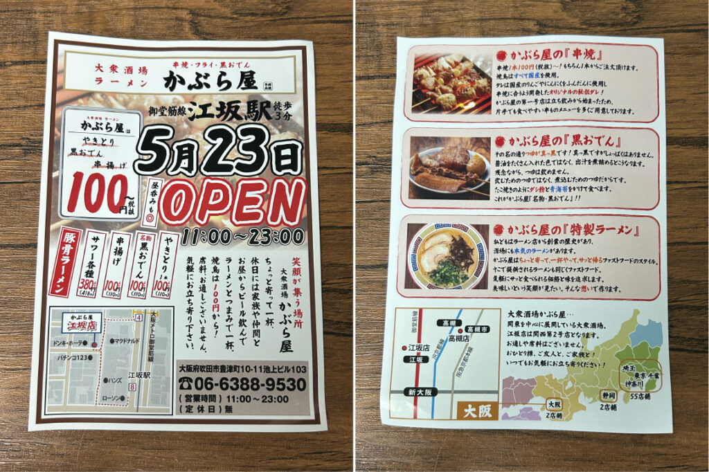 以前工事中の様子をご紹介した「かぶら屋 江坂店」が、5月23日にオープン!関東では50店舗以上ある人気のチェーン店で、江坂店は関西では高槻市に次ぐ店舗となり、吹田市では初出店となります。“笑顔が集う場所”という冠のとおり、店前に立つだけでも賑やかな雰囲気が伝わってきます。