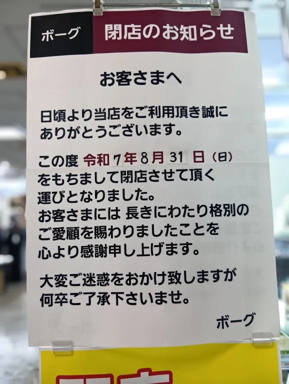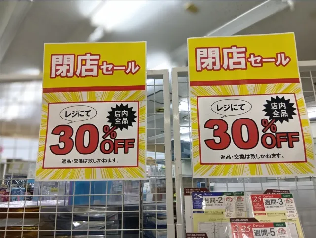 現在、全品30%オフの閉店セールを行っています。駅前にあり、夜も21時まで営業と、とても便利だったので閉店は本当に残念です。