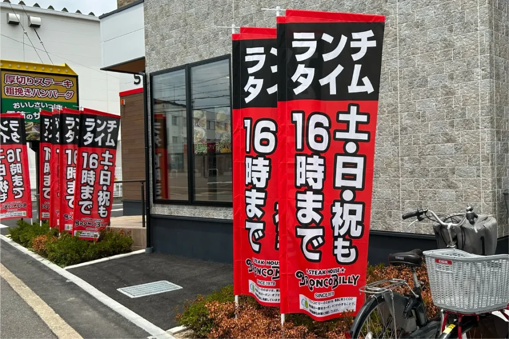 1978年に創業した名古屋発のステーキハウス「ブロンコビリー」。「吹田岸辺店」は、吹田市初出店とあって、平日のランチタイムどきをのぞいてみると、多くのお客様が待機スペースで順番を待っているほどでした。