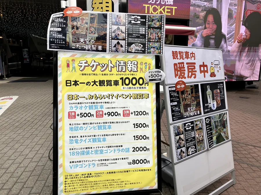 「OSAKA WHEELオオサカホイール」では、予約はもちろん可能です。日時指定チケットや企画ゴンドラのチケットを購入することができます。