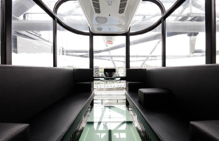 基が床面シースルーになっており、そのうち2基はソファー仕様のVIPのゴンドラがあったり、期間限定のユニークなイベントゴンドラがあったりするなど、様々な試みも面白い施設です。