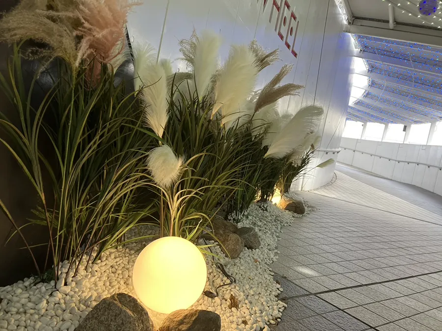 LEDライトと共にボールライトや季節を感じる装飾などもあり、さらに光の回廊が続きます。年中ライトアップされているのは、気分もあがりますよね。