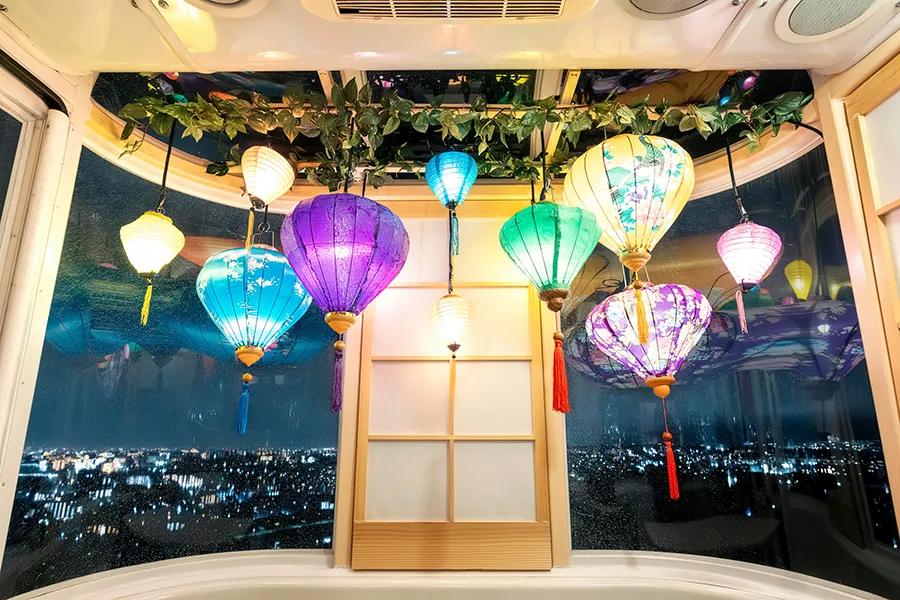 夏はランタンフェスティバルをイメージした、ゴンドラ内にもランタンを飾ったランタンゴンドラ。