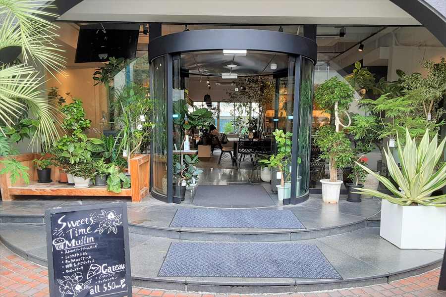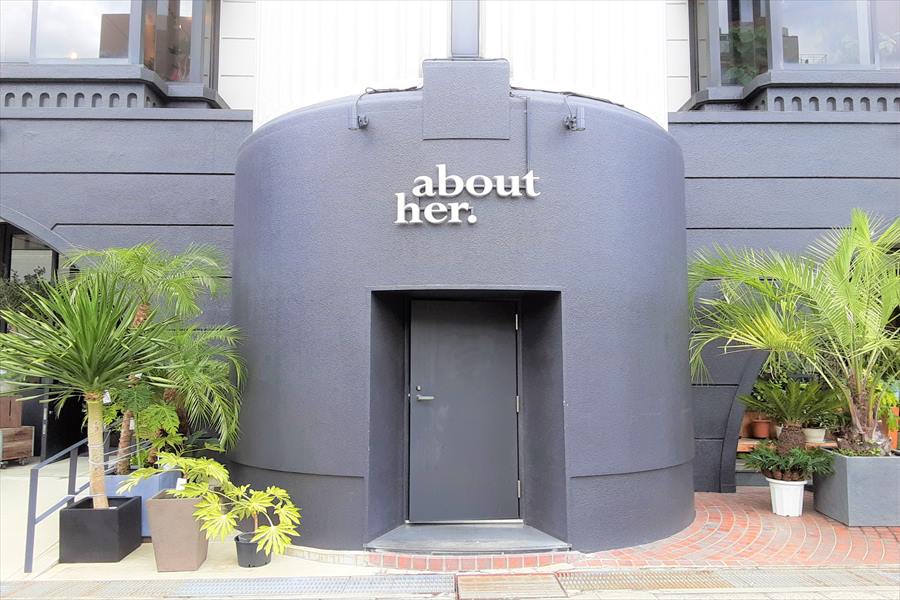 「about her.(アバウトハー)」も駐車場はもちろん完備(駐車場は上の写真のビルの丁度裏側になります)。大型の観葉植物や鉢植えなども多いので、車で訪れたほうがよさそうですね。