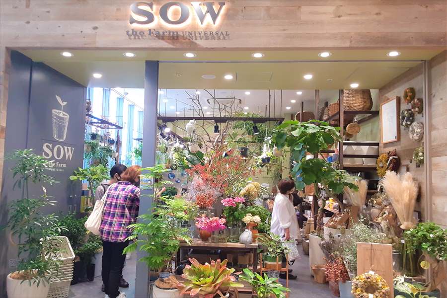 大阪モノレール・万博記念公園駅から9分ほど歩く場所にある「SOW the Farm UNIVERSAL (ソウザファームユニバーサルエキスポシティ)」。こちらはEXPOCITYオレンジサイドにある施設で、2021年9月16日にオープンしたばかりのお店。プロデュースは、北摂で「観葉植物」と聞くと真っ先に名が挙がる「the Farm UNIVERSAL」のサテライトショップなんです。