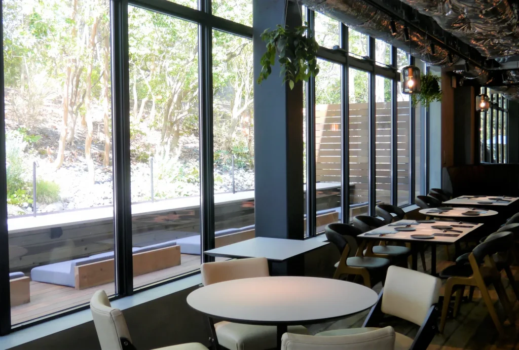「1oooRE SCENES(センリシーンズ)」 で一番大きな面積を占めるのがイタリアンカフェ「SEN℃(センド)」です。千里の森に囲まれたテラス席も豊富に備えたカフェは、素材の鮮度にこだわり、調理に使用する温度1000℃などからこの店名になったのだそう。