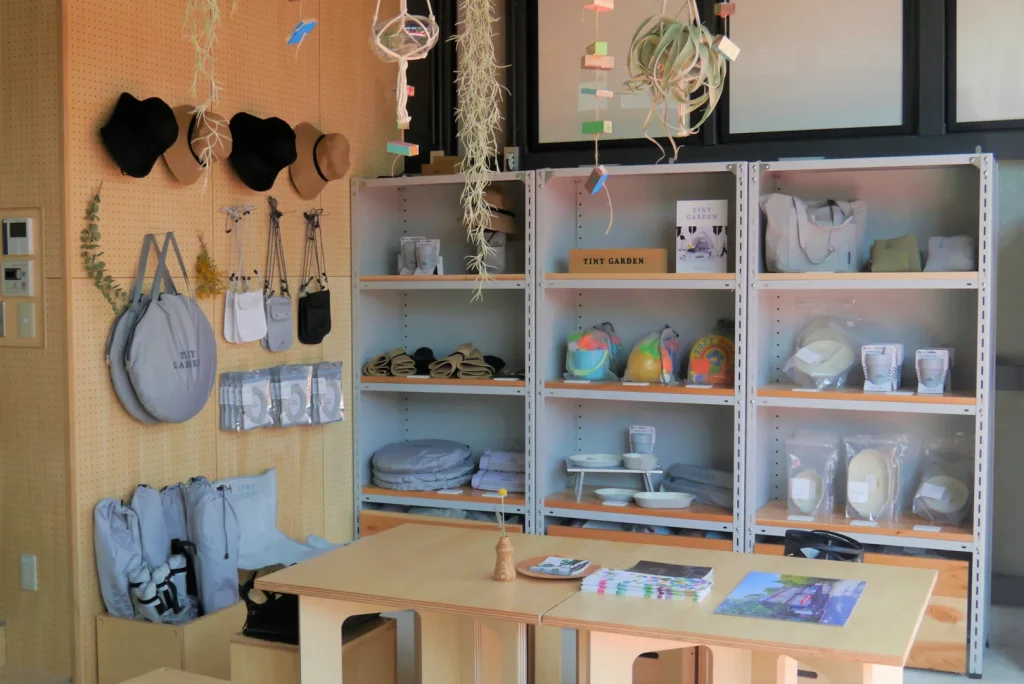 また「アーバンリサーチ」が企画商品化した公園を楽しむグッズ「TINY GARDENS PRODUCTS(タイニーガーデンプロダクツ)」の購入も。公園で遊ぶ時に便利だったり、楽しくなるグッズを購入することができます。シンプルでおしゃれなグッズの数々はつい欲しくなりますね。