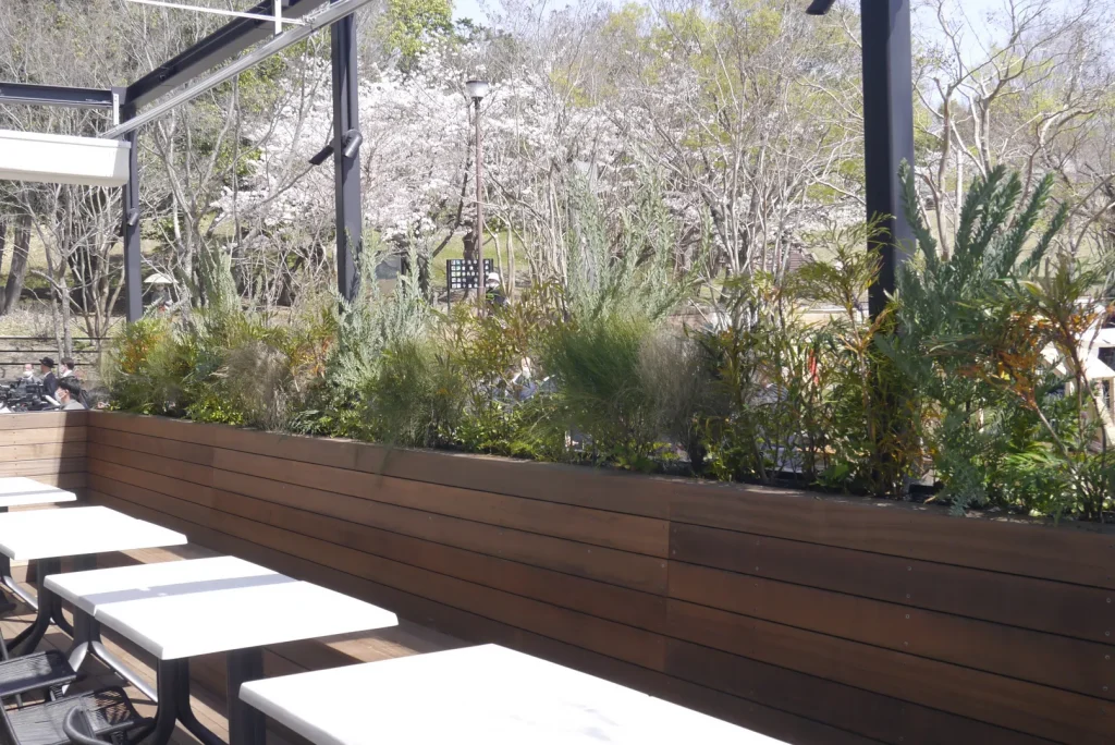 千里中央駅や阪急山田駅、北千里駅などから少し歩いたところにある千里中央公園。地元の市民が多く集い憩うこの千里中央公園に2023年3月30日、千里中央公園の魅力を再発見し、公園利用者や地域の方とつくりたいとオープンした施設が「1oooRE SCENES(センリシーンズ)」です。