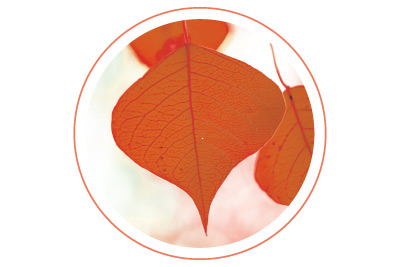 葉は光エネルギーを用いて、無機物から有機物を合成し栄養源として生育。光合成が大きな役割で、その光合成の速度が低下する生育に不利な乾季・寒季を乗り越えるための適応が落葉なのだそう。落葉の準備として、葉の付け根に離層という組織が発達し、葉で生産された物質が幹や枝とやり取りされなくなり、葉が色づいていく仕組み。