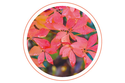 赤の色素は春や夏には存在せず、葉緑体の代わりに過剰な光を吸収するアントシアニンが発生したことによるもの。日の最低気温が8℃以下になると紅葉がはじまり、5~6℃以下になるとより紅葉が進行する。