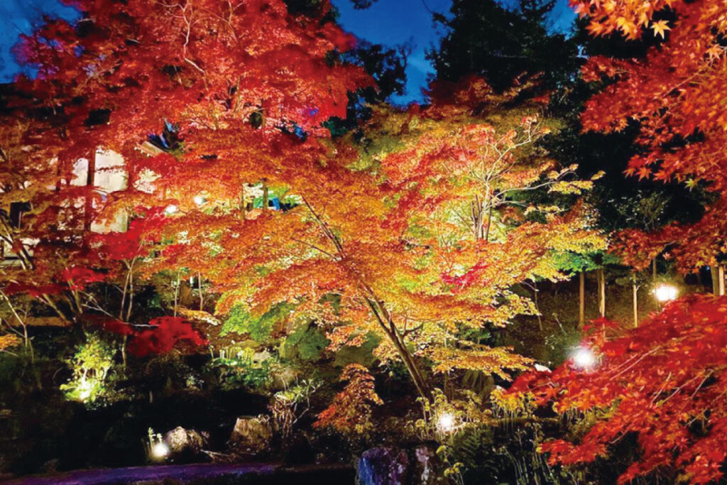 植物の多様性を知ることができる同園。国内最大級のフウや色づいた針葉樹のスマスギ、国内初のシナマンサクなど、ほかでは見られない様々な樹種の紅葉を観賞することができるのも魅力。紅葉ライトアップのほか職員の案内による紅葉散策ツアーも人気。