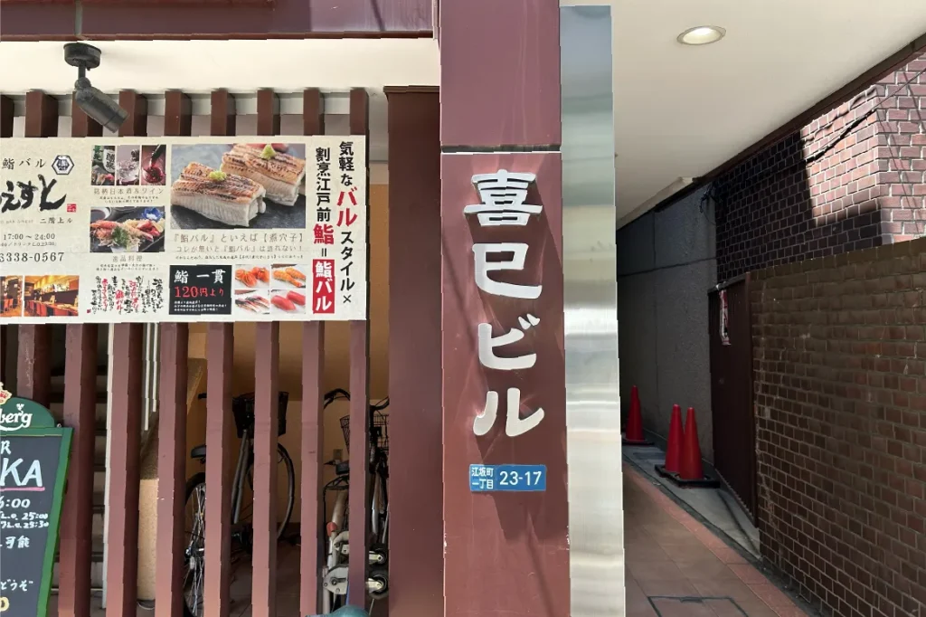 店舗は、8月27日(水)にオープンした「焼肉こじま 離れ 大阪江坂」と同じ「喜巳ビル」の4階。ビル正面から見て右側が入口のため、来店時はご注意ください。