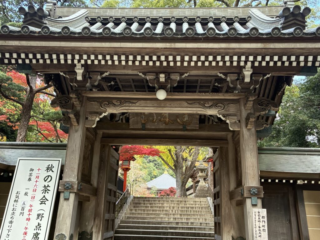 文人ならずとも、不老不死の幽玄な世界は魅力的ですよね。阪急清荒神駅から清澄寺までの緩やかに曲がりくねった参道は両脇のお店をのぞきながら、楽しく歩ける上り坂。私が以前訪れた20年ほど前の風景と同じ個所(お食事処や神具店)に新しい店(カフェやバルなど)が点在していて時代の流れを感じます。そして上に行くにつれ、空気が冷たくなって、不思議と気持ちがひきしまります。山門からのぞくと、取材日には黄金色のイチョウと紅色のモミジが美しい風景を織りなしていました。ふと、仙境の裾野あたりまでたどり着いたようにも思えたり…美術鑑賞付きのお散歩としても、なかなかオツですよ。