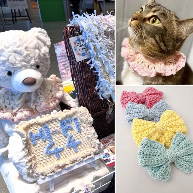 また、ハンドメイドの作品やアクセサリーなど、雑貨が多い今回。手編み雑貨の「Hi-Fi44」には春らしい、パステルカラーの商品がたくさん並ぶ様子。ペット用のアイテムもあるのがいいですね。