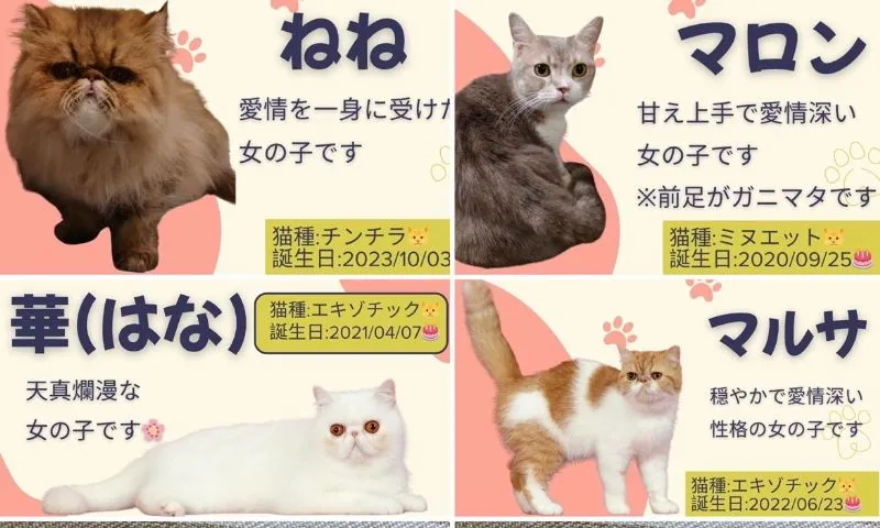 3月22日(日)に屋外のおおやね広場で開催されるマルシェでは15のブースと3台のキッチンカーがやってくるそうです。魅力的なブースが多いなか、今回、気になったのが初参加の「ぶちゃまる」ブース。「テントの中で、猫とふれあえる場を作ります」とブリーダーの鳴海さん。ミヌエット、エキゾチックショートヘアー、ペルシャ(チンチラ)のかわいい子たちを抱っこしたり、なでたり、遊んだり。「猫の好きな人に喜んでほしいし、猫のかわいらしさを多くの人に伝えたい。そして卒業猫の新しい家族を探す譲渡の縁にもなればいいな」と。20分500円。