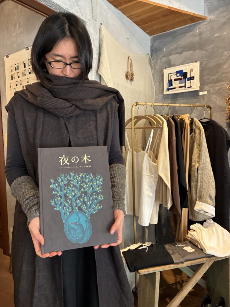 個展のDMハガキにはいくつかの額ぶちが並んだ写真が使われています。福島さんが上田さんの作品(額装)に出合ったのは数年前。福島さんが大好きな「夜の木」というインドのアーティスト3人が描いた絵本がきっかけ。絵本のアーティストの中の1人、バッジュ・シャームの個展を見にいった際、その絵が飾られた額装に心奪われたのだそう。