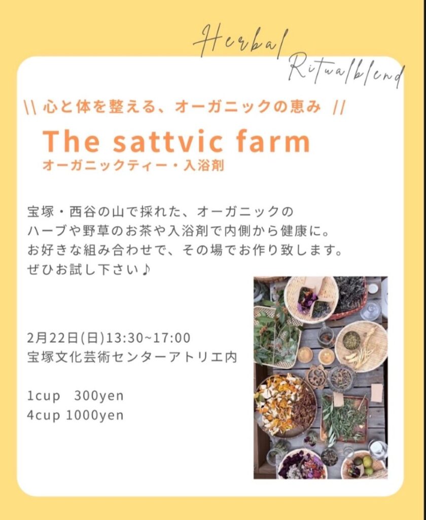 その彼女が手掛ける「トワボワマルシェ」は今月で14回目。花市に加えて、MIKIさんが体や心に良いと思うものを扱う工房や人に声をかけ出展してもらっています。例えば、国産の豚肉を天然の海塩や香辛料で味付けをした、無添加のベーコンやソーセージを扱う「itsumono」や宝塚の西谷でとれたオーガニックハーブや野草のお茶や入浴剤を扱う「The sattvic farm」など。
