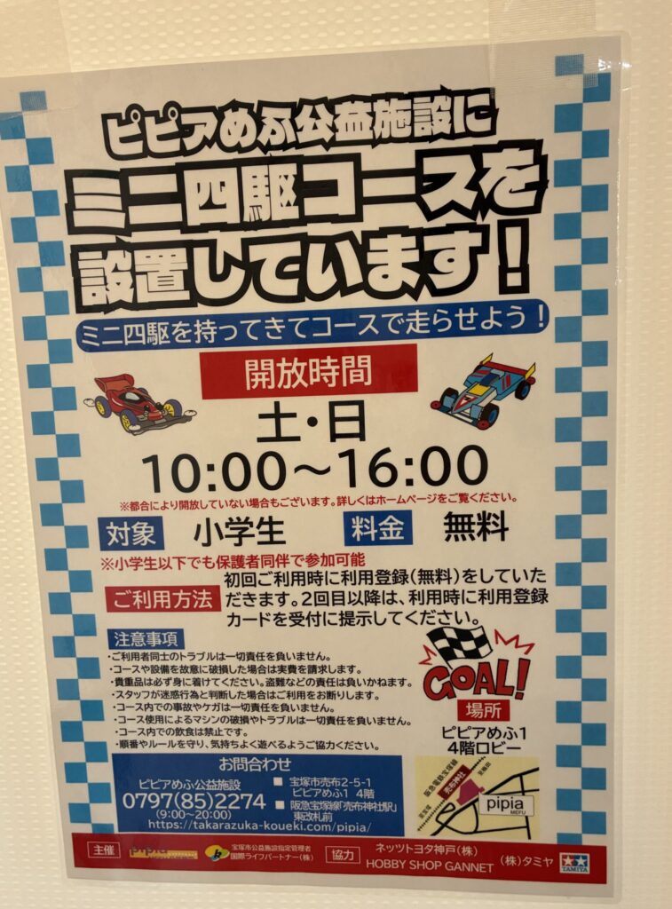 時々、ショッピングモールで開催されているのを見かけることがあるミニ四駆のイベント。ピピアめふでミニ四駆のタイムアタックがあると聞き、売布でなぜミニ四駆?と興味を抱きました。
