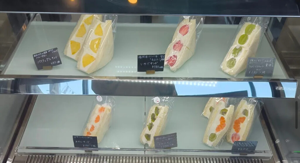 私が取材中に通りかかって気づいたのは12月9日。店先に蘭の鉢があって、店内に灯りがついているので、アポなしで覗いてみました。まだオープンすぐで、キッチンはあわただしく調理の最中。手が離せなくてごめんなさい!と、取材はできませんでしたが、冷蔵ケースには以前同様にフルーツサンドが並んでいました。お店のインスタによると、以前同様にフルーツサンドやアサイーボウルは続けていき、メニューは減ることなく、むしろ増えています。