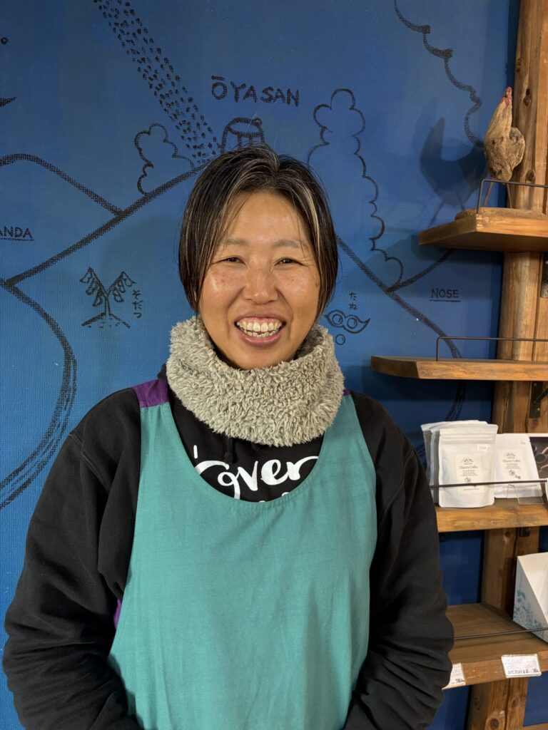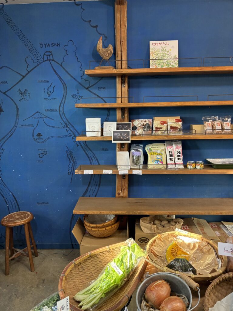 いつも野菜から調味料や加工食品などで大にぎわいの店内が、ほぼからっぽの状態。開店と同時に近所から遠方から、常連さんやファンが押し寄せてきたことが一目で分かります。お店番をしていたのは、奥様の出口真弓さん。もともと車での移動販売をしていた出口ご夫婦がここ山本にお店を構えられたのが、2023年の4月。一度聞けば耳に残る、呪文のようなあだ名のような店名は、オーガニック クロッシングの略。小さな規模の農家さんが作っている減農薬や無農薬の野菜を中心に集めて販売されてきました。めぐる八百屋というのは、農家と消費者をつなぐ役割を果たすという意味が込められているのです。そして、取材時はまさにご主人の晴久さんは「オガクロ」号で配達に出られていました。