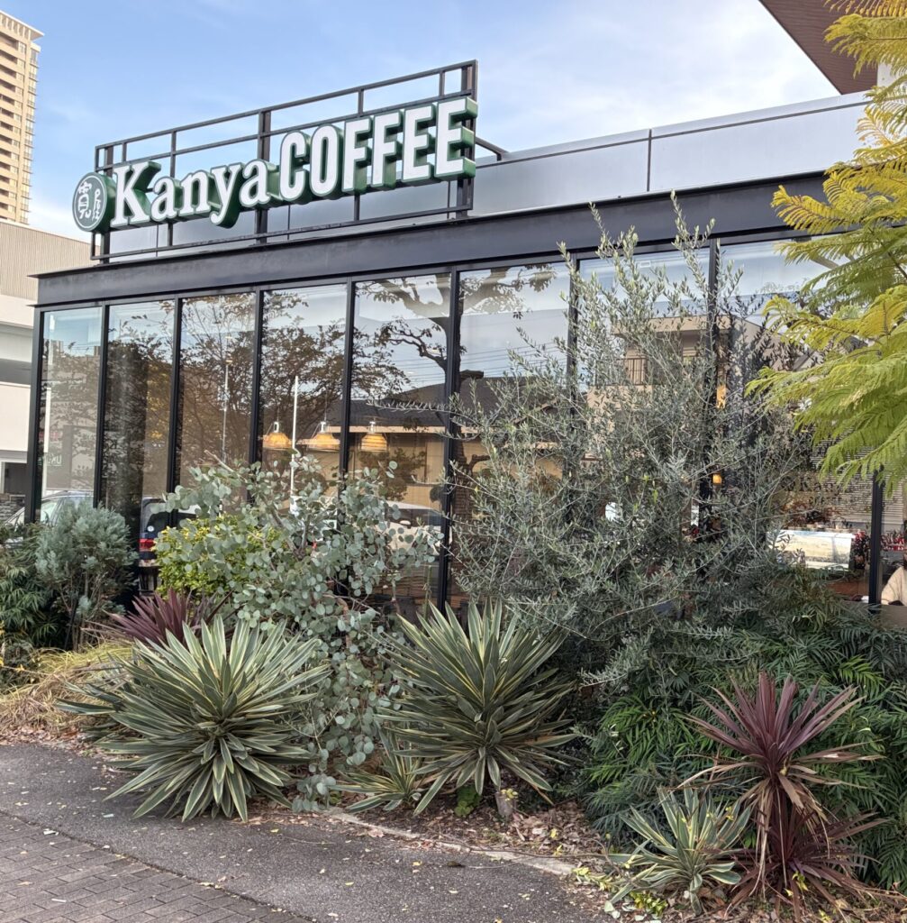 谷町と宝塚に店舗がある「Kanya COFFEE」。二店舗とも以前は「グリーンベリーズコーヒー」でした。ちょうど1年前の元日に名前が変わり、リニューアルしたのが「Kanya COFFEE 宝塚劇場前店」です。名前が変わっても、スタッフも営業体制やメニューも変わらず、安心して過ごせる心地よい空間を提供してくれています。特に宝塚劇場前店は車通りの多い国道176号線沿いに面しているのに、店をぐるりと取り囲む緑の植栽がイキイキと茂っていて、店内の窓越しにその風景を見ていると街中であることを忘れてしまうほど。天井が高く開放感があり明るい店内は、混んでいても不思議とゆったり過ごせます。しかも早朝7時から深夜23時までやってるので、重宝します。