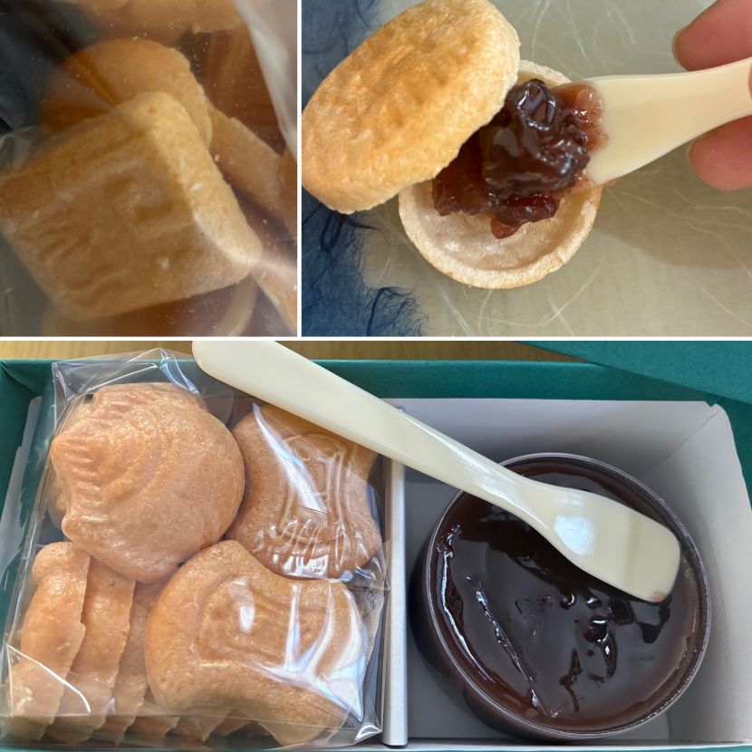 寳もなかの、種と餡が別包装で箱詰めされているセットがあります。寶あわせ、と言います。自分で付属のへらを使って食べたい時に食べたいだけ、もなかを作って食べられるのです。種が餡と別なのでサクサクなのが魅力です。寶あわせの誕生には、小林一三氏の奥様が関わっていました。種のパリッとした食感を楽しみたいと言われ、宝塚ホテルにいる奥様のもとに種と餡を別々にして届けたのが起源だそう。私も、こちらが好きで家でいただく際には餡の上にアイスをのせて食べたりも。ちなみに天海祐希さんは寳もなか派。檀れいさん、一路真輝さんは寳あわせ派なんだそうですよ。