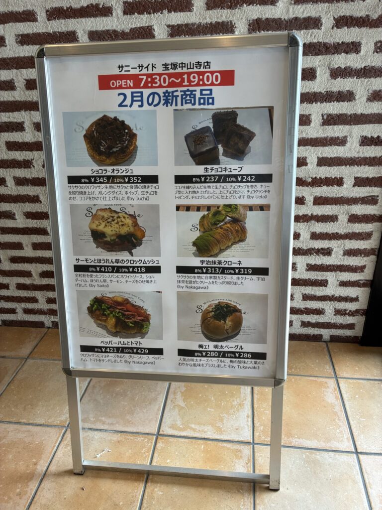 サニーサイドのパンもお店の雰囲気も好きで、吹田南千里本店をはじめ西宮大社店やあちこち訪ねてますが、ここ宝塚中山寺店は初めてでした。静かな住宅地の大きな通り沿いにあってサニーサイドはこうでなきゃ、という雰囲気、気に入りました。