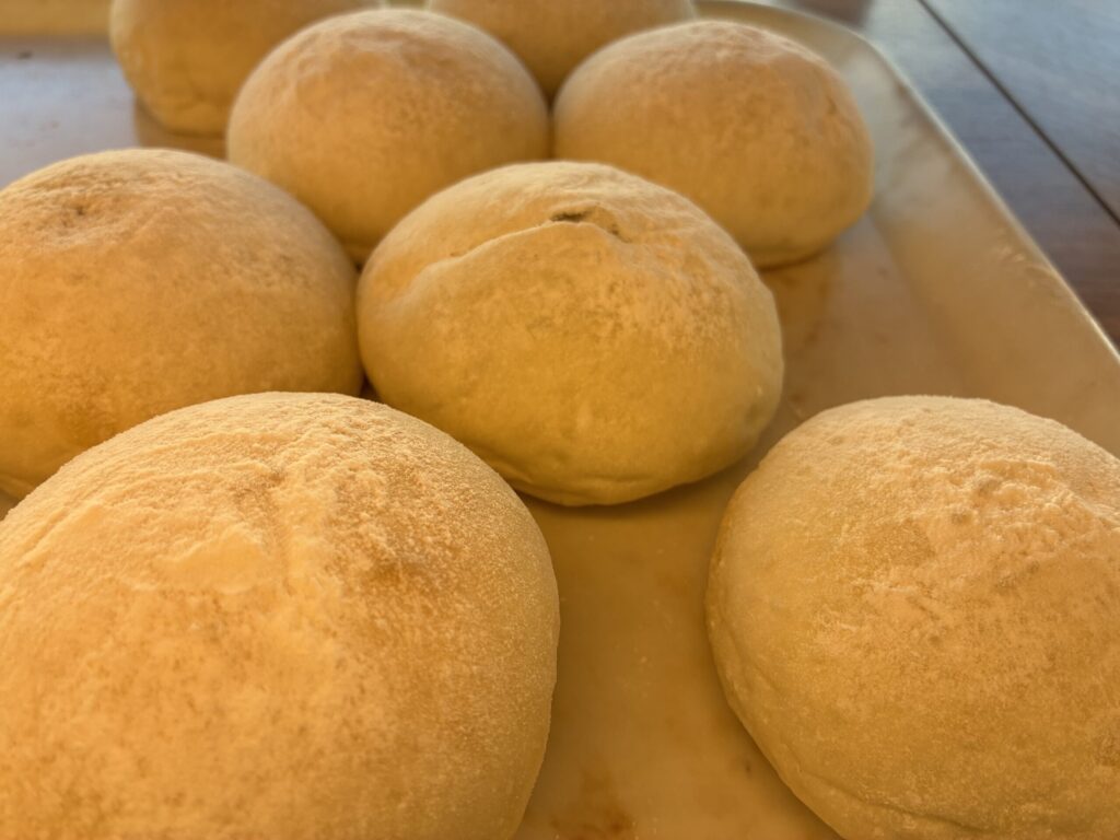 山食はもちろんゲットですが、今日は菓子パンに注目しました。なにしろ、西宮市民にとって手土産にもらうことが多いのは山食。菓子パンは、目新しいのです。まず驚いたのが、種類の多さ。そして価格です。他のお店ならプラス50円から100円するであろうというお値段に、思わずトングがすすみ、気になったものをトレイへ。
