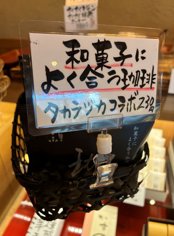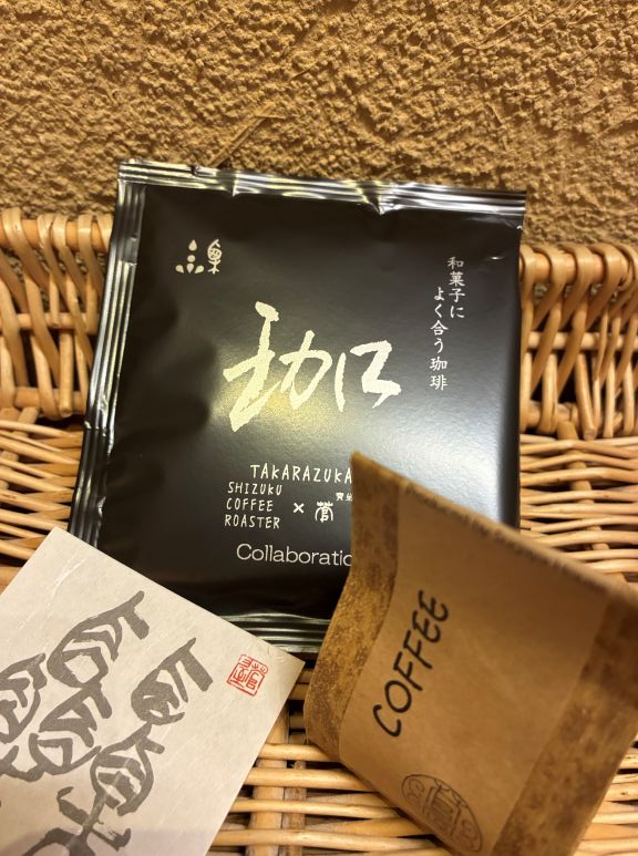 ここ数年のスペシャルティコーヒーブームよりも早く、宝塚で12年前に誕生したスペシャルティコーヒー専門店「SHIZUKU COFFEE ROASTER」とコラボし、和菓子に合う「タカラヅカブレンド」を誕生させたのが5年前。タカラヅカブレンド珈琲は1袋230円。すっかり人気を集めるこのコーヒー、お菓子と合わせて購入する方が多いそう。