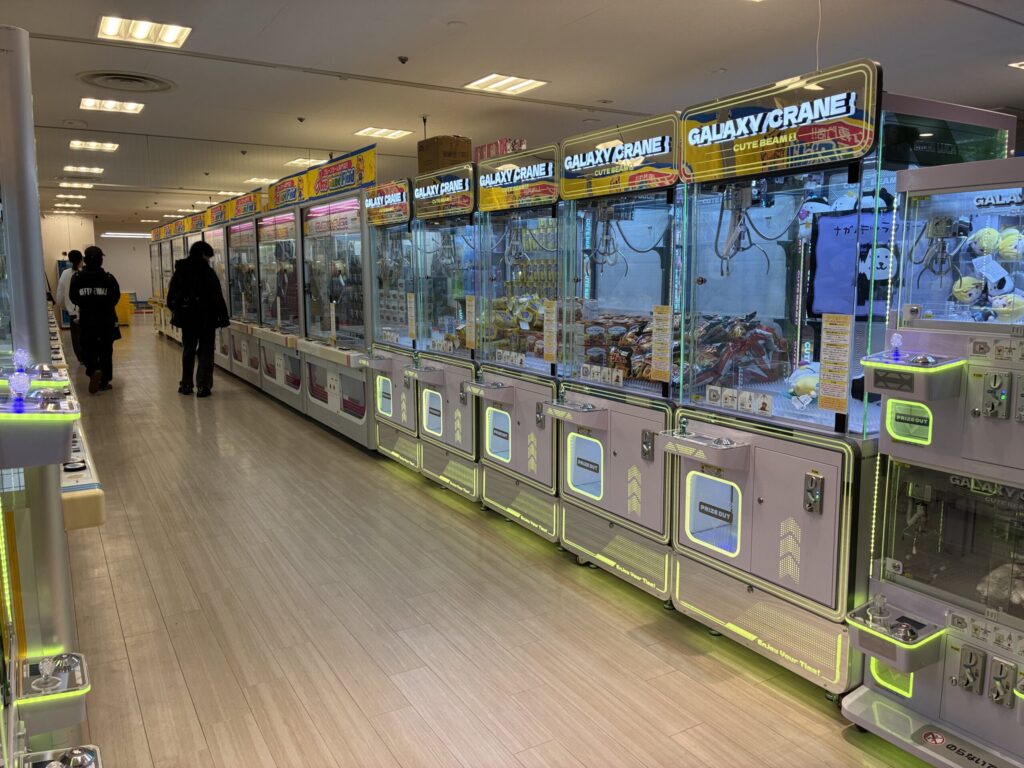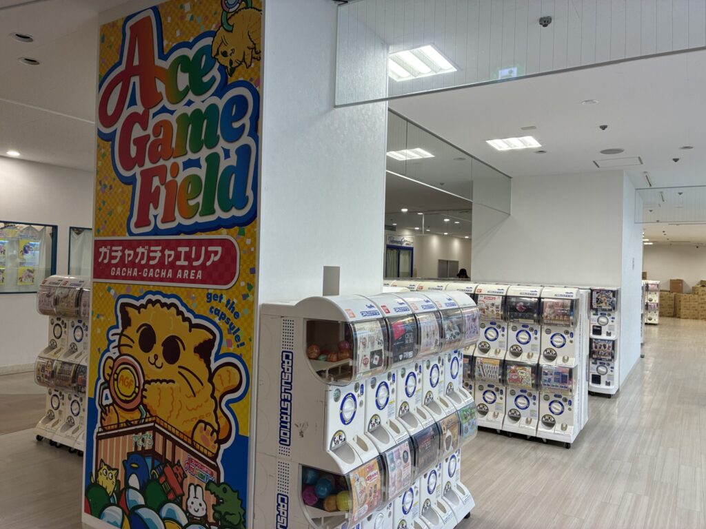 11月29日にオープンしたばかり。阪急逆瀬川駅から直結のアピア3の二階にできたクレーンゲーム専門店「ACE GAME FIELD宝塚店」を覗いてきました。神戸に1~3号店があって、阪神間ではここが初。すっきりと広いフロアにクレーンゲーム機が72台、ガチャガチャが240面(と専門用語で言うらしい。台数で言うと120台)整然と並んでいました。
