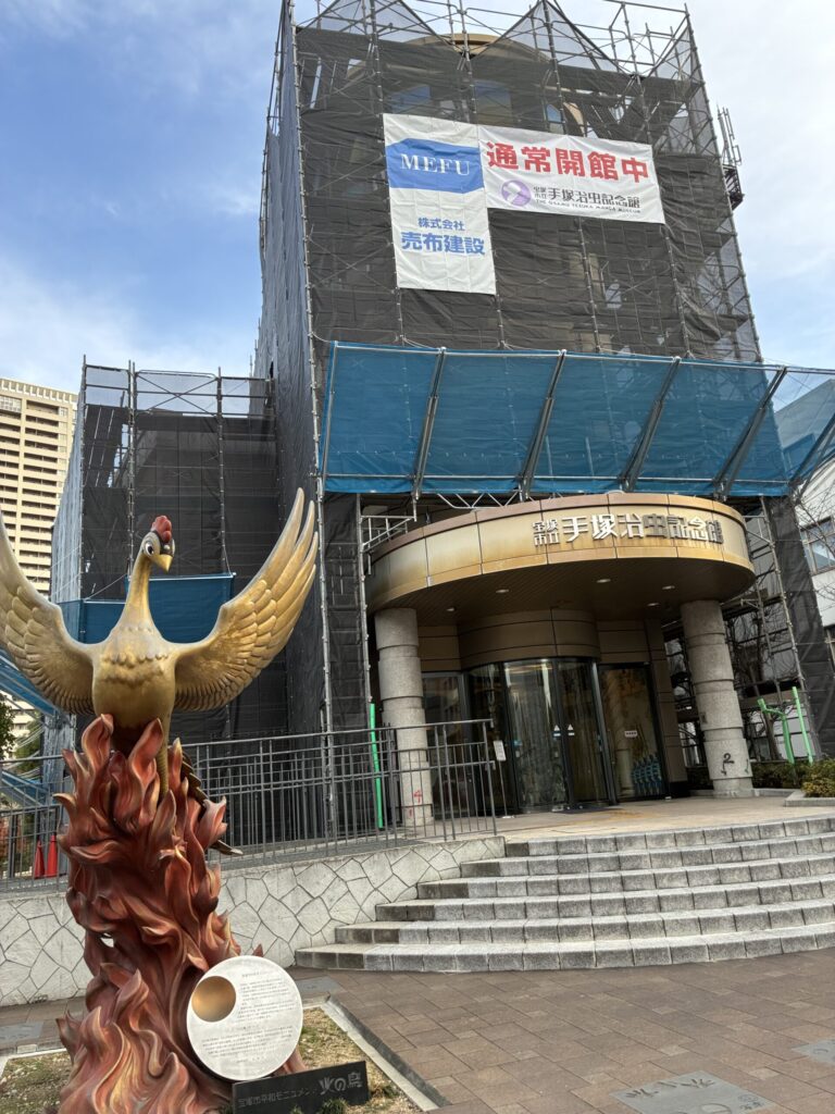 ただいま、記念館の外壁改修のため、見た目は工事中でびっくりしますが、通常開館中です。2月23日(祝)まで「けものフレンズ展」を開催中で、何度も足を運んでいるファンも多い人気の展示です。訪れた際には羽子板もしっかり見学して、記念撮影してくださいね。