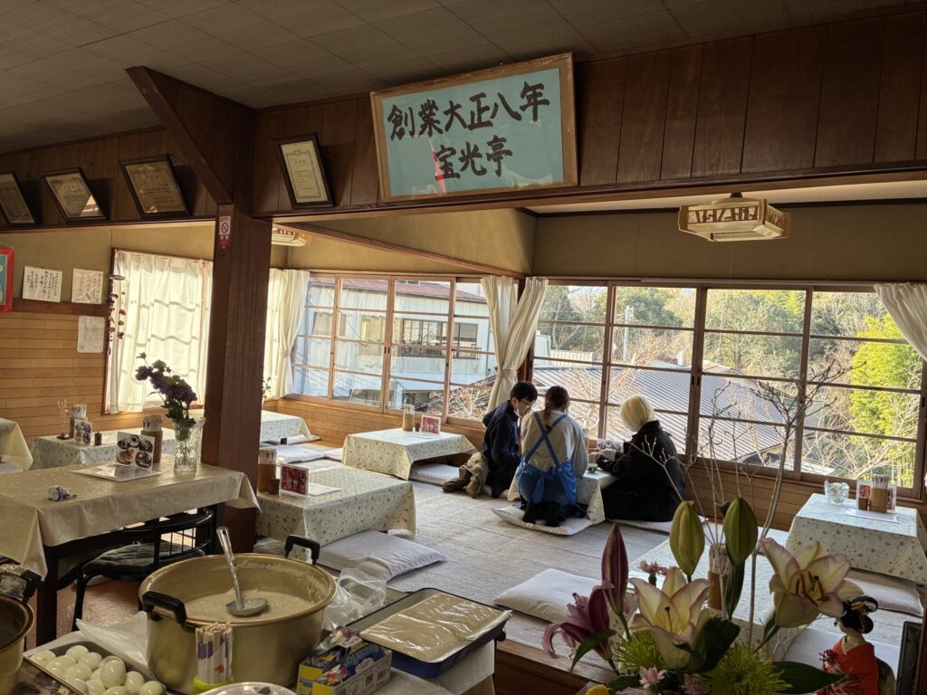「宝光亭」といえば、大正8年から親しまれている食事処。参道のちょうど中間あたりで、高台からの景色を楽しみながらおいしいうどんやおでんが食べられることで人気です。そこで寄席とは、いったいどうして?と疑問に思い、お店を訪ねてみました。