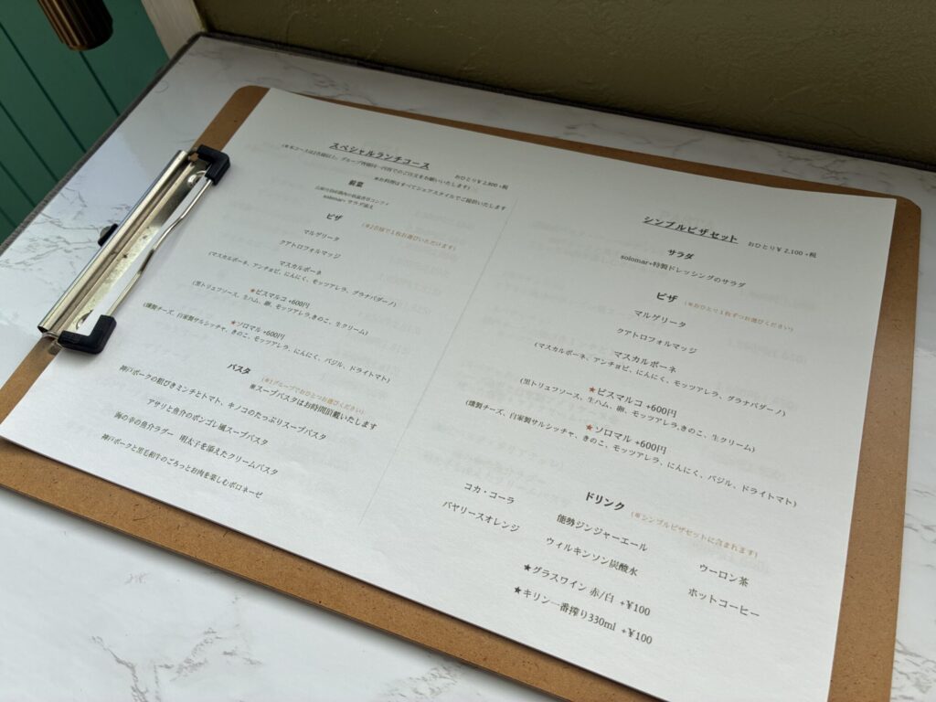 メニューはもちろん、大人気のピザが中心。そこにパスタやドルチェなどの単品料理も追加され、気軽にカジュアルなイタリアンバル的な使い方もできるお店になる兆し。今はランチでカジュアルなコースが二種類用意されています。前菜にピザとパスタがついたスペシャルランチコースが2,800円(税別)。サラダとピザ、ドリンクがついたシンプルピザセットが2,100円(税別)。※スペシャルランチコースは前日までの要予約です。
