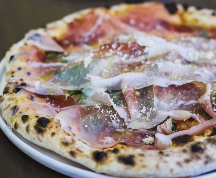 ↑ 生ハムは注文を受けてからスライスするって。今度食べたいと思ったピザ「たっぷり生ハムとやさい」