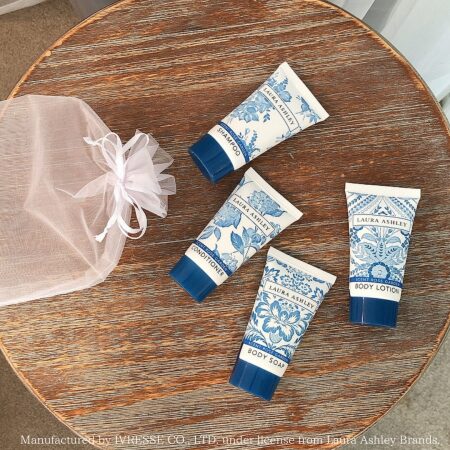 宝塚ホテルに3月31日までに3回宿泊すると、LAURA ASHLEYギフトセットがもらえるという企画です。シャンプー、コンディショナー、ボディソープにボディローション。宝塚ホテルはバスアメニティがすべてLAURA ASHLEYで統一されており、家にいながら宝塚ホテルを思い出させてくれる香りが楽しめます。