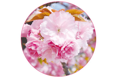 日本原産の里桜で、八重桜の代表的品種。強健で生育がよいことから、海外でも多く植栽されている。