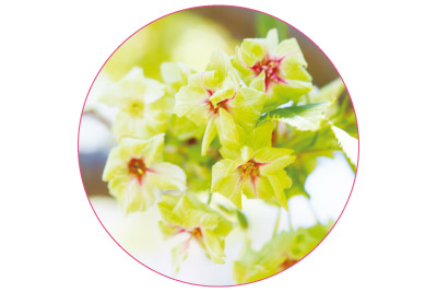 室町時代から知られる八重桜。葉化した2本の雌しべが、普賢菩薩の乗る象の鼻に形が似ていると、この名が付いた。