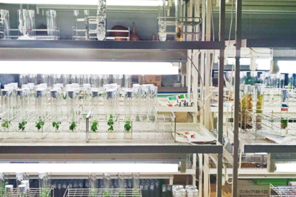 品種改良には、性質の異なる同種の植物同士を交配する、種類の近い別の植物と交配する、放射線や化学物質を用いて突然変異させるなど様々な方法がある。そして、西宮市では品種改良したオリジナル品種の苗を培養増殖で増やしている。これは、植物の一部を切り取って栄養分が入った無菌の瓶の中で培養し、育ってきたら外の環境に慣らす馴化(じゅんか)を行い、最後は土に植え替える方法。無菌状態で培養するため植物が病気にならず、効率よく苗を量産できるそうだ。