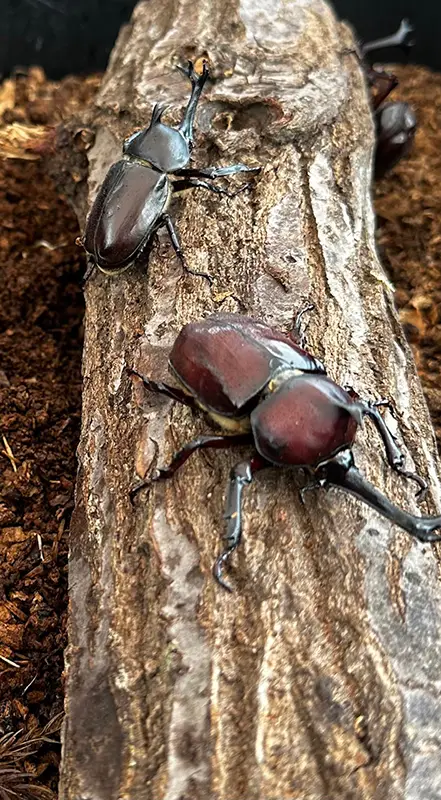 都の椎茸農家が育てた、国内・海外のカブトムシ・クワガタ。実際に触れ合ったり椎茸から成長に関する自然循環が学べ、国内カブトムシペアの生体も販売されます。