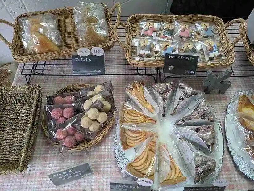 販売会では地元産の新鮮な野菜や清水っ粉を使用したスイーツなども並んでいたので、フレッシュなわさび菜や高槻特産の三箇牧トマト、焼き菓子などを購入。
