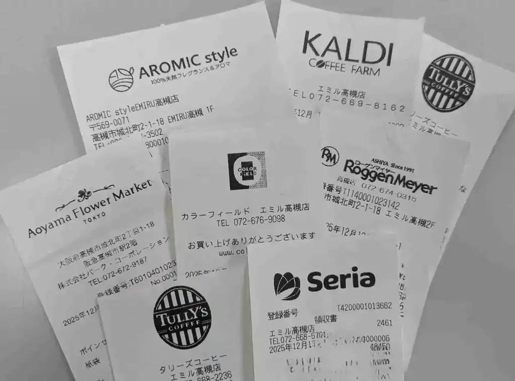 青山フラワーマーケットでポインセチアの鉢植え、カラーフィールドでコスメ、カルディでお菓子など、アロミックスタイルでルームスプレー、セリアで日用品、ローゲンマイヤーでパン、タリーズコーヒーを2回利用…で8枚分。