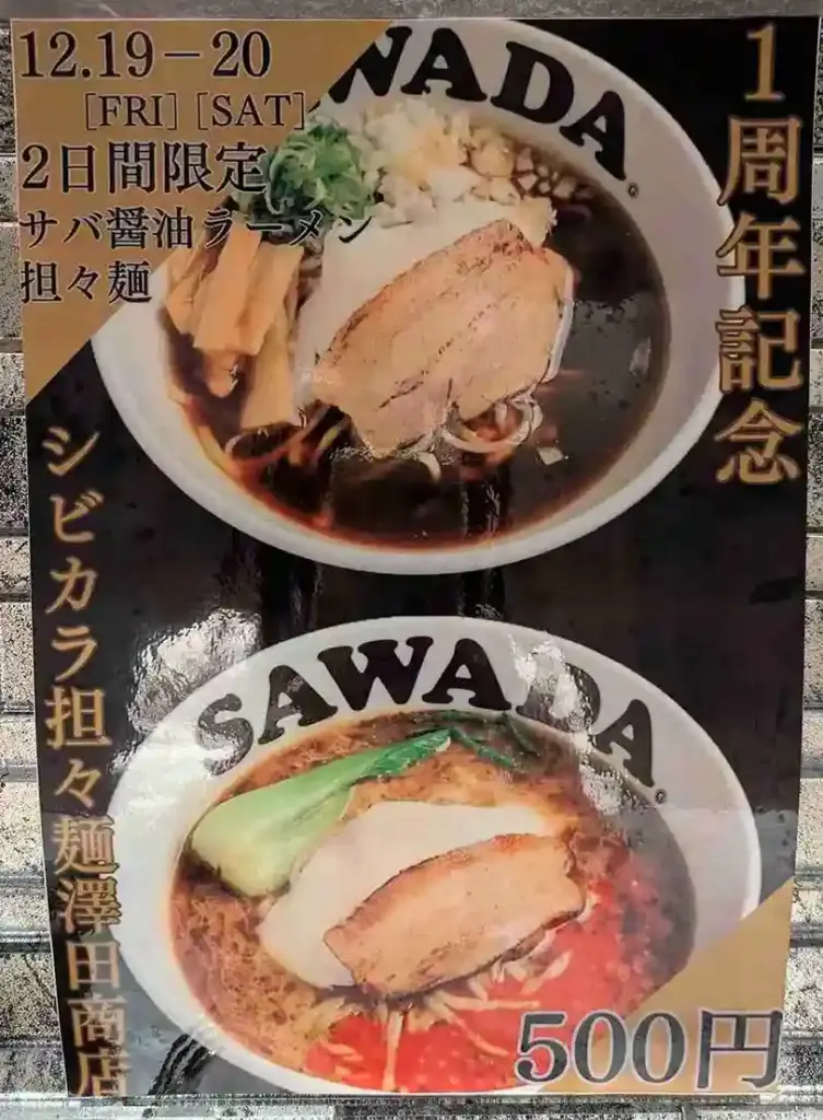 この担々麺と人気のサバ醤油ラーメンが、12月19日(金)と20日(土)の2日間限定でなんと500円でいただけます!!