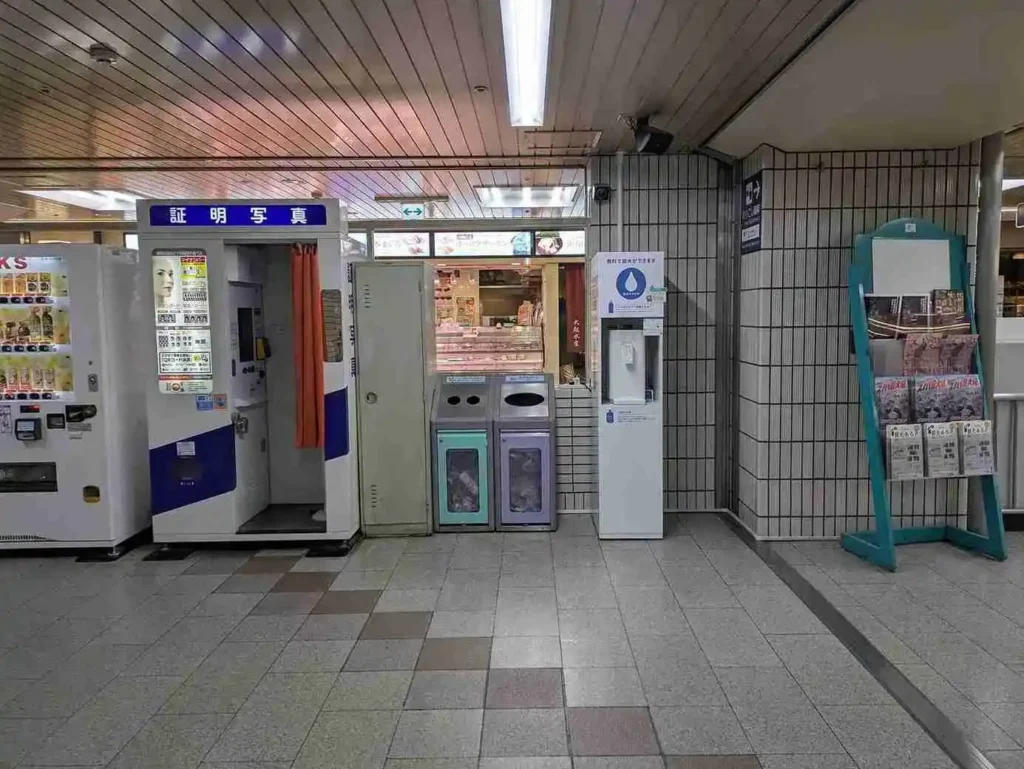 阪急高槻市駅構内のマイボトル専用の無料給水スタンドは、改札を出る手前の、ここにあります。