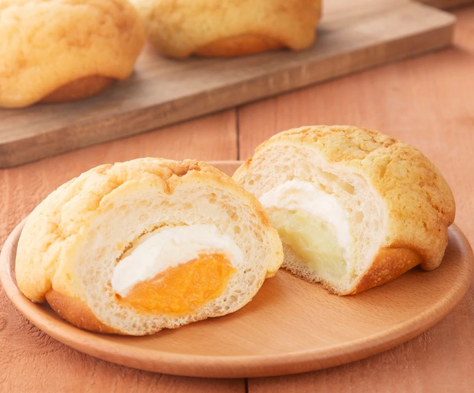 濃厚な甘さの赤肉メロン、爽やかな甘さの青肉メロンのピューレをたっぷり使ったクリームが入っています。